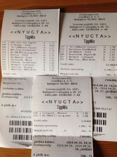 Tegnap dortmund-arsenal-kosicével nyertem összesen 5400-et ( vagyis 3900 ft profitban vagyok ) s most a profitból tettem 2 ezret.