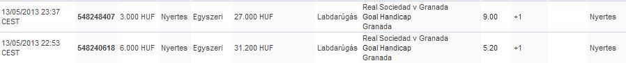 (Játék összesített) 05/14/2013 Egyik sem 1.68 Függőben -