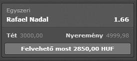 Mára nagyon csábít Nadal, élőben talán teszek rá, de még jobban húzok a pihi fele inkább.