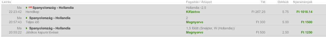Jó kis bukta lesz nálam ha nem nyernek a spanyolok.