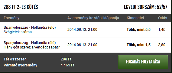 pohár: azért az nem rossz,h élőben a szögletre ilyen odds van.