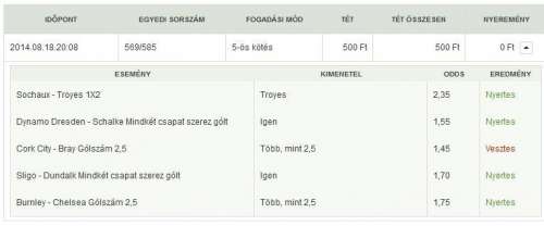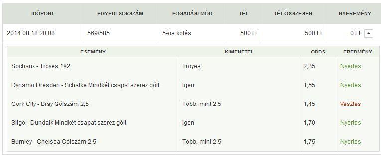 (Játékidő eredménye) 17/08/2014 Egyik sem 1.57 Nyert