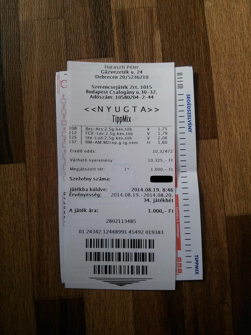 csak hát hirtelen elcsábítottak ugyanerre a nagyobb szorzós első félidősök, hogy ne csak elméletben játszak, mint egy kolléga...****
