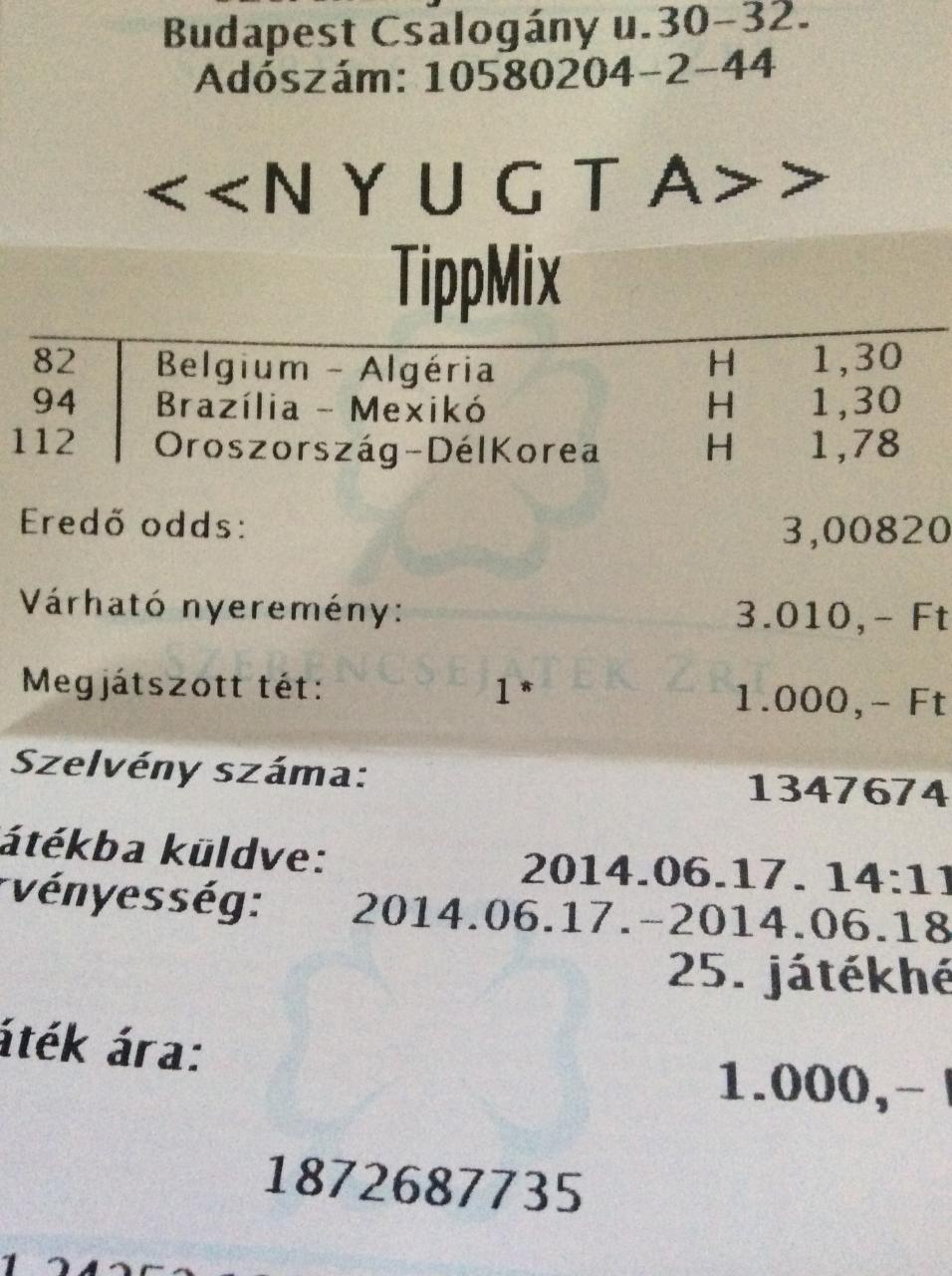 Nyilván nem mennek utánad 1000ft-ért, ezért írtam, hogy esetleges nagyobb összeg. Mindegy, legtöbbünk itt meglépte már azt a kort, hogy egyrészről legálisan játszhat, másrészt talán képes eldönteni neki mi fér bele a törvényes keretekbe, csak jeleztem, jelenleg továbbra is csak a Szerencsejáték Zrt. lehetőségei adottak nekünk legálisan.