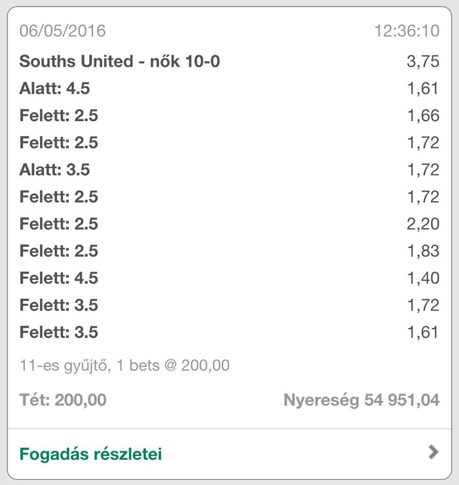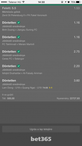 Én tegnap tettem 6 vagy 7 meccset egy szelóra, 180,-ftból jött volna 24ezer (döntetleneket tettem)