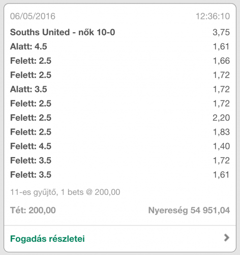 Arról nem is beszélve, hogy annó mindig kivettem 90. perc előtt a pénzt, mert ahh úgyse fog jönni a maradék 1gól, legalább egy kis aprót megmentek (visszanyerek), és olyankor mindig jött volna.