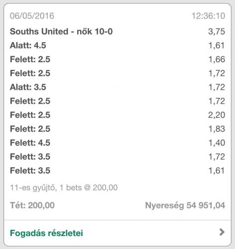 En azt birom a legjobban, hogy ma pl az egyik meccsen 2-1 volt az allas, vendeg kapott egy piros lapot, egybol 3-1 lett a 45.percben, oke megtettem 5.5 gol fole 10000-el 1.66os odds, mondom amugyis mar 3 golt lott a hazai csapat, piros lapot is kapott a vendeg, 2golt meg csak bepattint valaki.