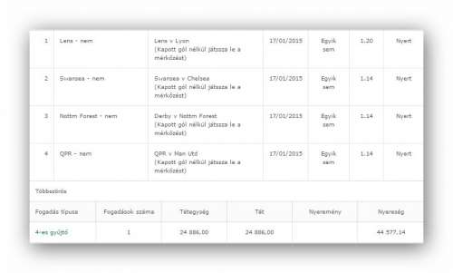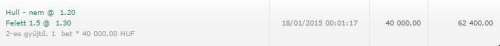 (Játékidő eredménye) 30/12/2014 Egyik sem 1.44 Függőben