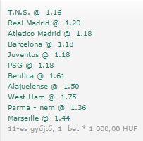 Nagy téttel West Ham gól + Benfica meccsen over 1.5.
