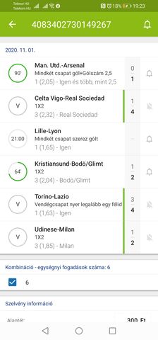 Ebből háromnál meglepire játszottam,a Toro 0:2 na mondom ez most pipa erre kap négyet ,Bremen kihagy mindent és lesz iksz,a Parma ok bennük annyira nem hittem.