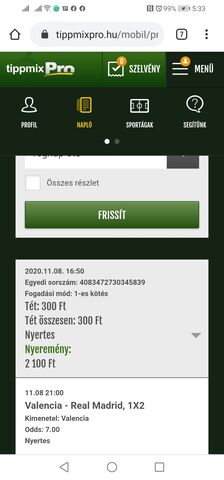 De megraktam egyesben a Zsorit a csődöt,már az is bukó viszont van még egy Pool és Valencia egyes kotesem győzelemre 🙄 -