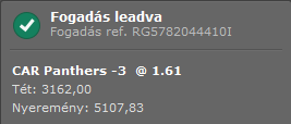 1,61-ért menni fog még egy Panthers -3-as hendi, szerintem 3k-t szánok rá tiszta 2 fejében, és akkor átlépem én is a 30-as határt
