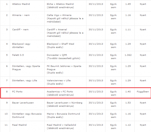 Na a 10es gyűjtős szelvényemen a Porto szívat be utolsóként...szép lesz.
