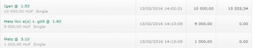 Néha teszek 1-2 meccset, mostanában nem tudok annyit rászánni, amennyi a meccsek elemzésével kellene tölteni. Meg ilyen 5k-10k tétekkel sose leszek milliomos az biztos.