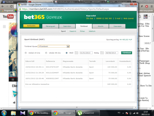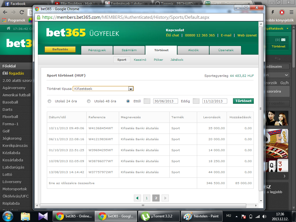 saját számláról. bet365 eredmények 2013 plusz a tegnapi 34k leutalásplusz a tesóm számlájáról a PSV 350k-s 1.5odds mellett 175k. 350k