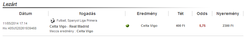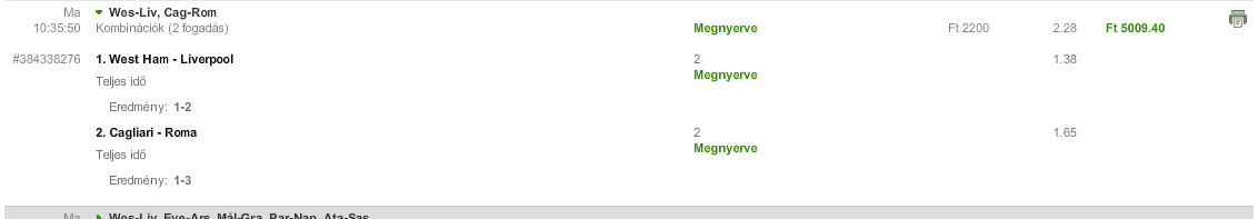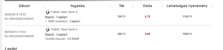 Az a baj, hogy most betclic-en fogadok és ott csak olyan van, hogy +1,5 amire csak 1,3x van...