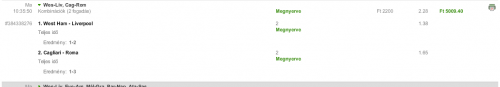 Persze, hogy velem történik ez is....Lemegyek rakni, (találtam egy jó kis meccset 4,10 körül, azóta lement 3,75-re) és persze, hogy lejárt a határidő, nem néztem, mert gondoltam este lesz....Erre tessék már félidőben 0-3