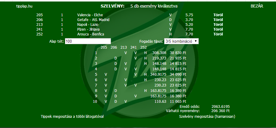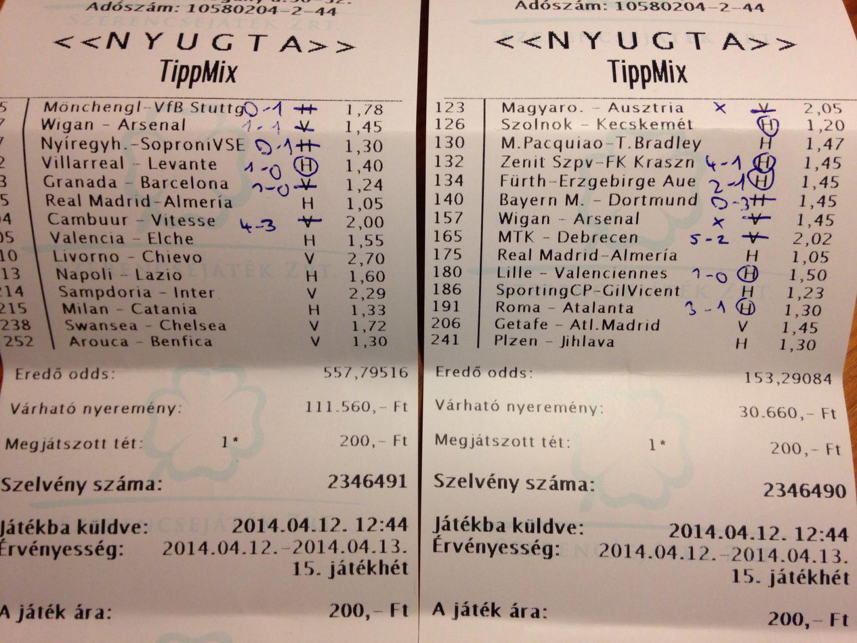 Az 5600 az elment az Atleticoval, viszont az X az jött (8K), meg meccs előtt raktam egy olyat, hogy fèlidő V, vègeredmèny D