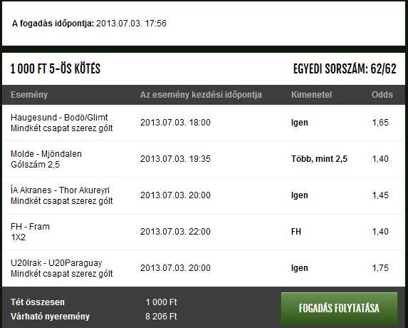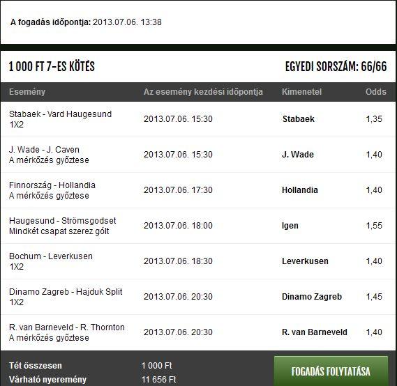 Aztán eddig szokás szerint 1 viszi, az is a legalacsonyabb odds, a Venlo 1.45-ért -