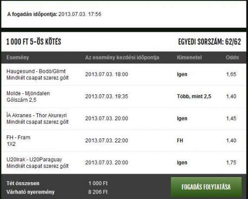 Mivel sorra mennek el az 1.5 körüli oddsok, próba képen most pár napig marad a szoktt 500-2000 alaptét, de csak 1.8x vagy e feletti oddsokra teszek, érdekes mód azok valahogy jobban jönnek, és jobban is eltalálom őket.