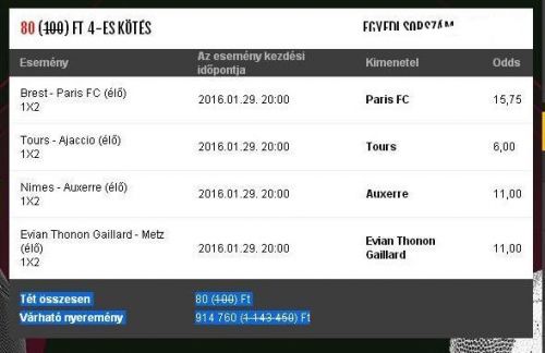 Brest - Bourg-Peronnas (élő) 1X2 Bourg-Peronnas 16,00 Nyitott