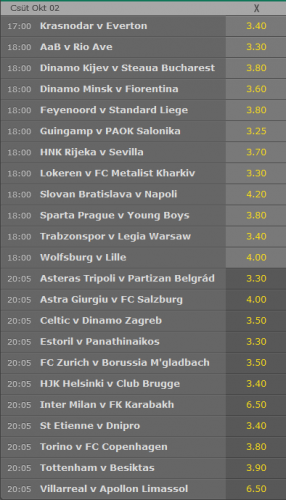 sose raktam, hol írtam ilyet? bújni kell a statisztikákat, hogy melyik csapat játssza a legtöbb félidei X-et (vagy végeredményt, attól függ, hogy mire megyünk), aztán rakni...
