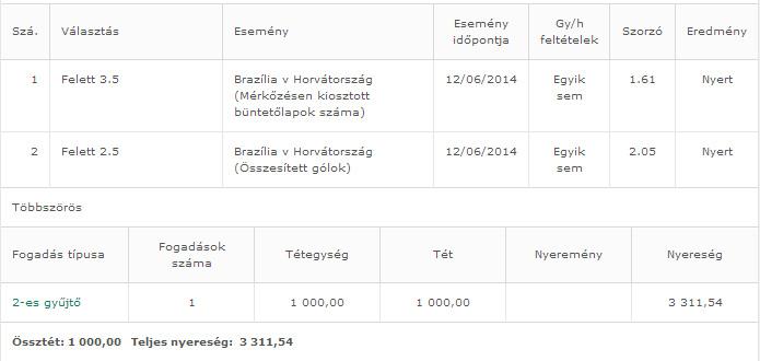 Na én raktam egy Brazil nyert, meg egy spanyolt 2k-val meglátjuk jön-e a papírforma.