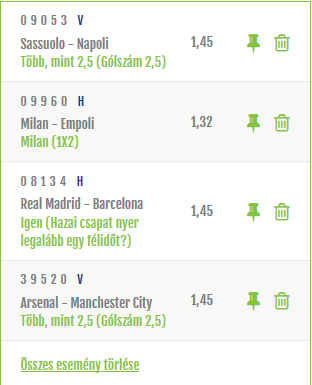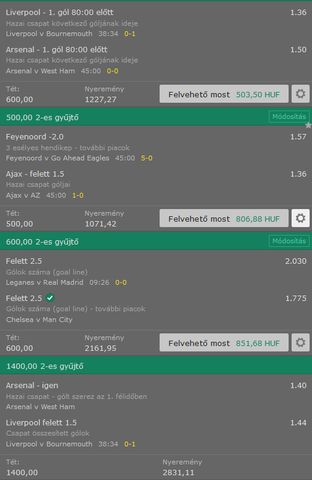 raktam egy meccs 2,5 overt (2x) & Real rúg több szögletet (1,3x) & 5,5 lap overt (1,6x), jöhet bő 1600ft, egynek jó volna, fedezné a mai bevásárlásom