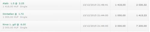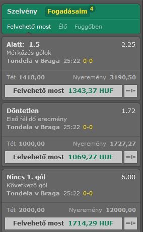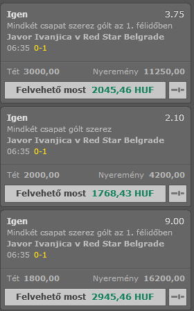 Érdekes volt, mert az első vendég gólt nem adták meg, de a bet365 beírta előre, hogy buktam.