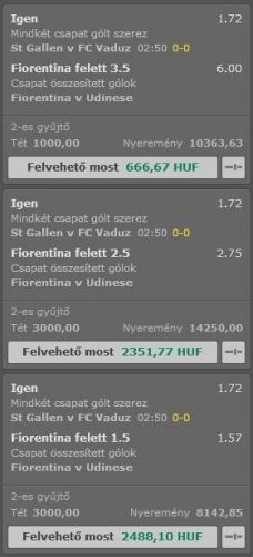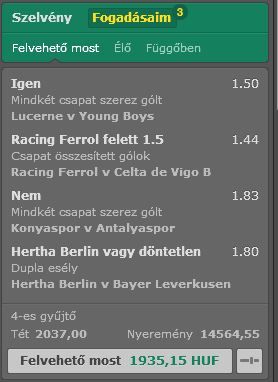 A mindkét csapat szerez gólt szerintem ok. Azt teszem pár szelvényre.
