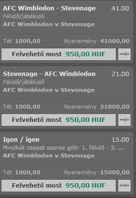 Wimbledon meccsen a félidő vége előtt 1 gól. Már csak 2 vendég kell és hiszek a véletlenekben.