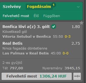 Beten enged olyat egy szelvényre rakni, hogy első félidő D és lapok száma 5.5 felett?