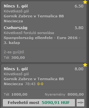 Gornik Zabrze 0-0 Termalica B-B. Marad ez így, hátha összejön.