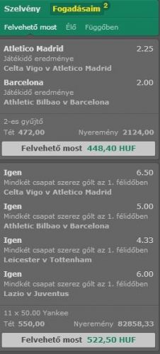 Visszafogtam 1X-re, 4-es oddson. Biztos, ami biztos alapon.