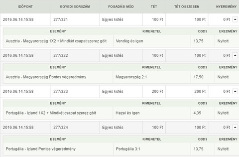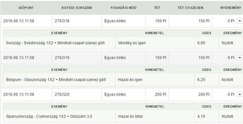 Mivel sajnos nem sorsolták ki az EB jegyigénylésemet, szerintem teszek egy számomra biztosnak vélt fogadást nagyobb téttel. (max. 5k)