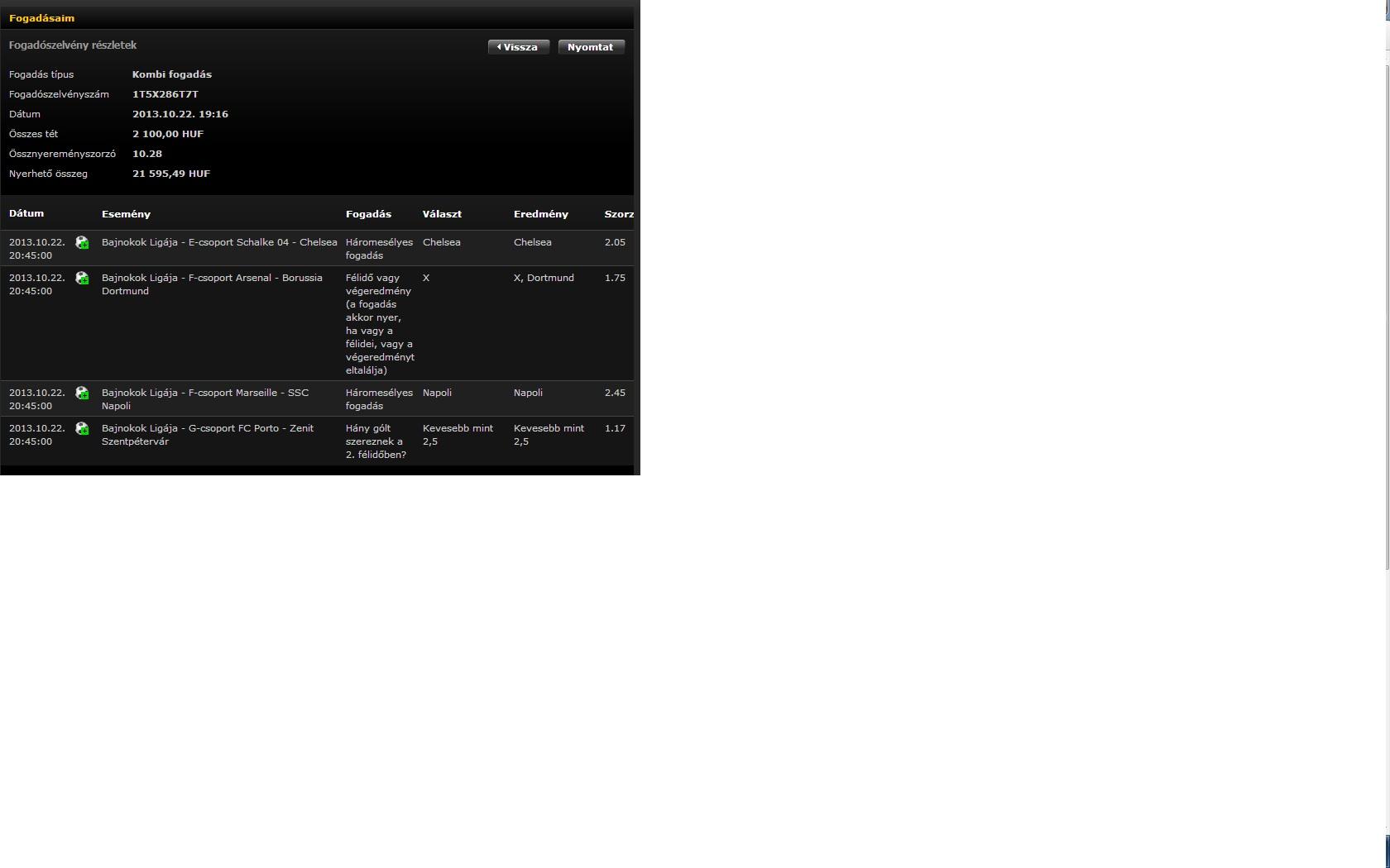 tehát ha 2 bejön akkor alaptét szorzódik a 2esemény szorzojával?