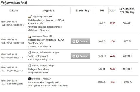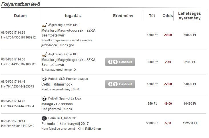Hmm ez a betclic a kombinált fogadásokra nem enged cashoutot.