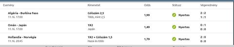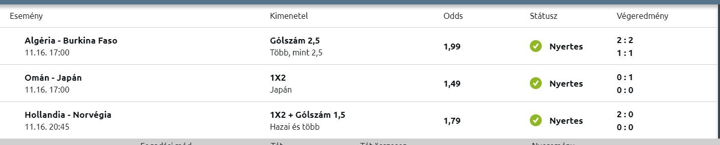 1 szelóm volt ma csak ilyen kis tétes de 8 ezer felett hozott volna,,inter turku,brendford ilyenek,mind sima lett.Csak a tanulság miatt,a képembe nyomta a szelvényajánló a győr hazait hozzászúrtam 1,35-ért,pedig meg is néztem 3-4 alkalommal dönciztek,na ezeket kell elfelejteni ezt a még hozzátolom úgyis tuti mentalitást,,,,,