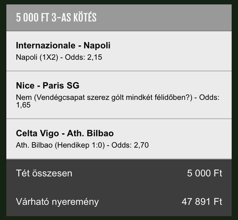 ...hát ezért volt a ez a záró tipp!de aköv. jegyet én veszem neki..!! Tuti tipp lesz