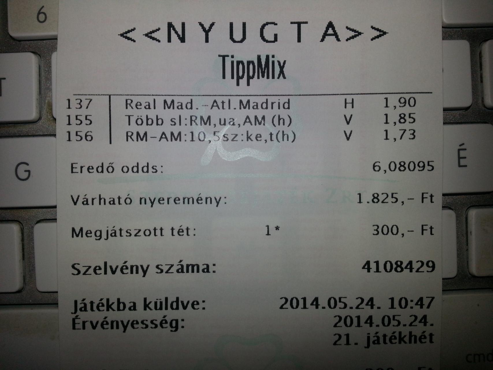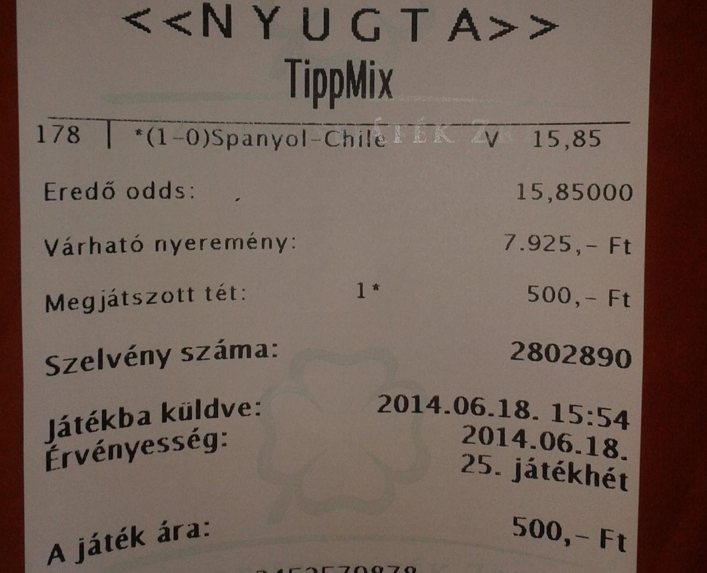 nem tudom miért nem rakom többel az ilyen megérzésket...na mindegy. félidőben ment még a kocsmáros által a beten az 1-7 és a 0-7. azon jött egy ezres, de beváltottam egy sör-SoCo kombóra.