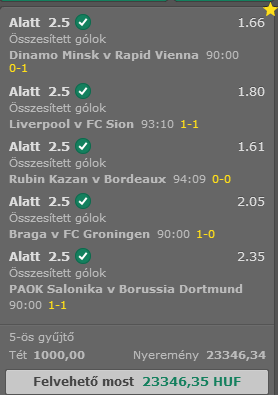 Wolfsburg+Everton 0.0 meglátjuk. Az újkastély és Lídsz is hozott egy kis aprót.
