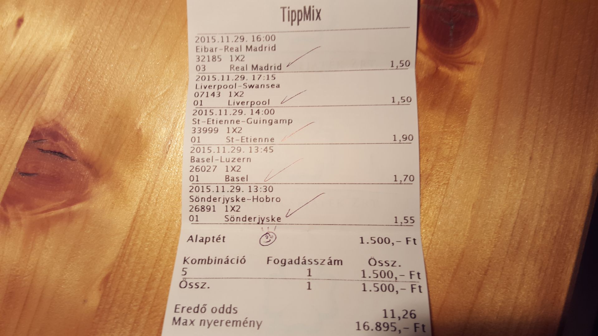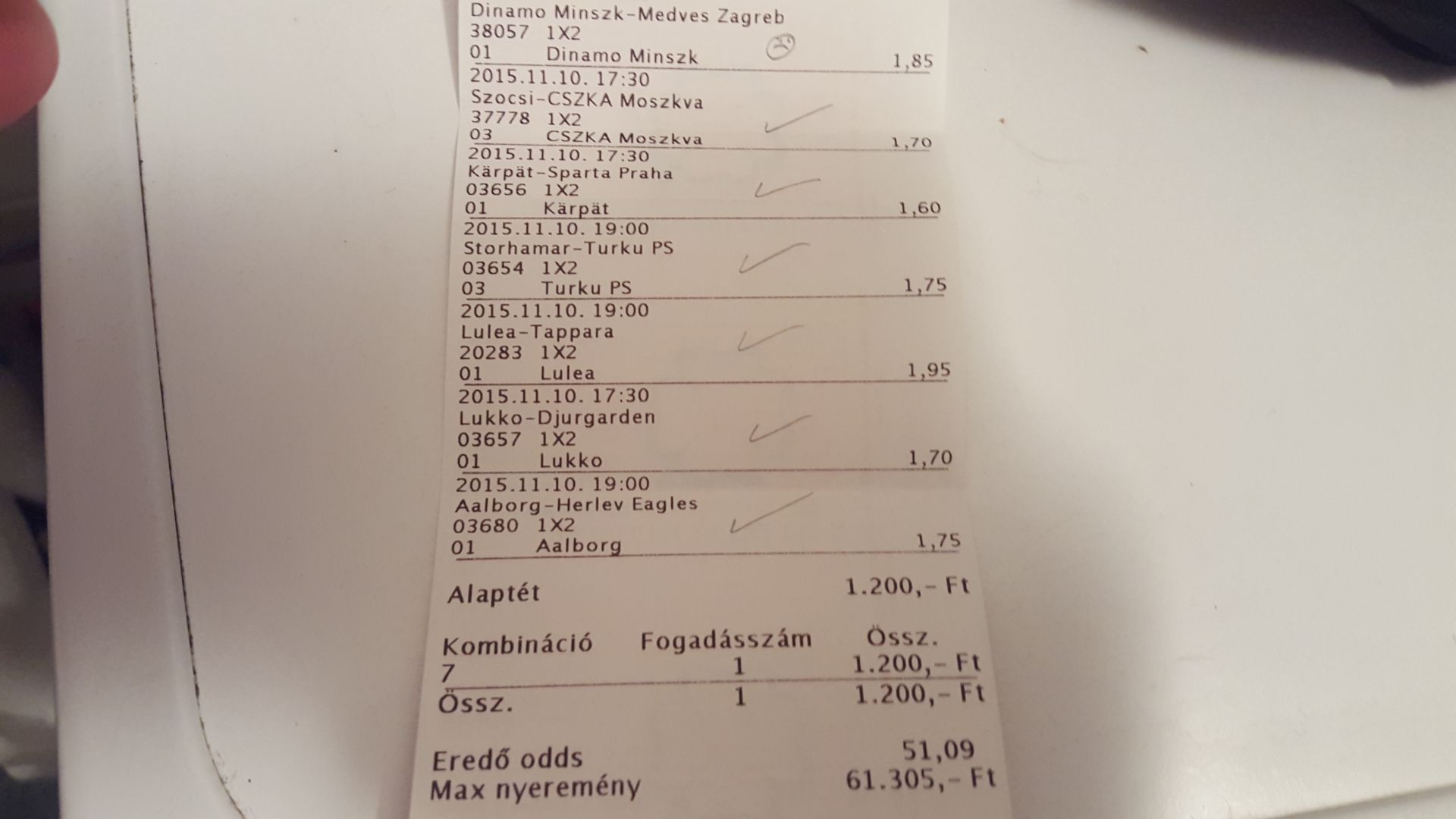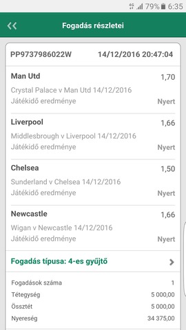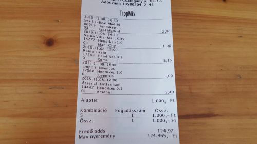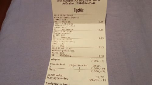 Szóval ha nem veszem ki a Juventus 1-1-nél akkor mind a 6 meccs jön és 2k------>168k lett volna...így 2k----->27k lett.