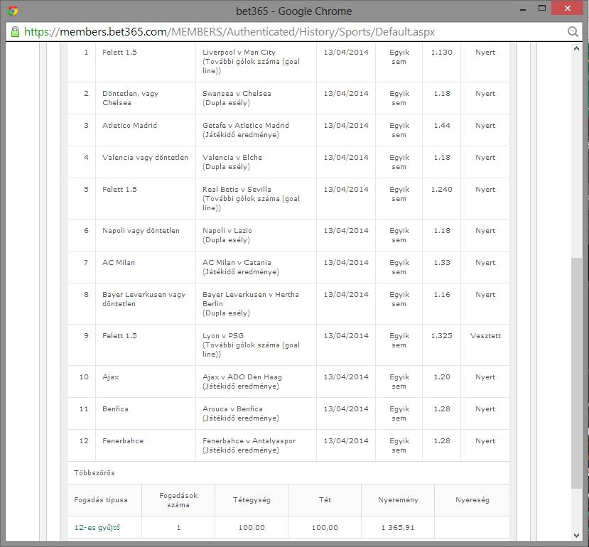 Mielőtt letámadnátok, hogy kicsi az odds, és erről volt itt a vita és kitiltás is. Igen tudom, csak én az izgalom miatt is fogadok. Így jobb nézni a meccset. Persze nem a mínusz a célom...