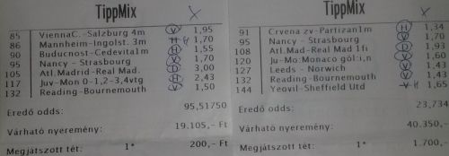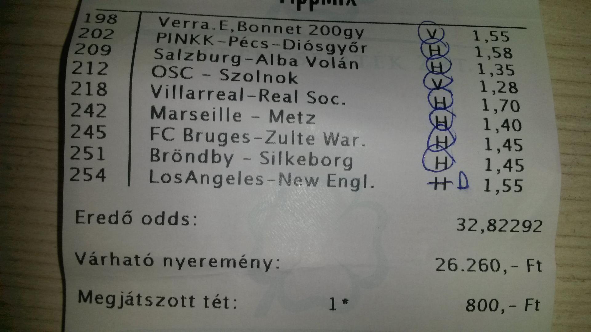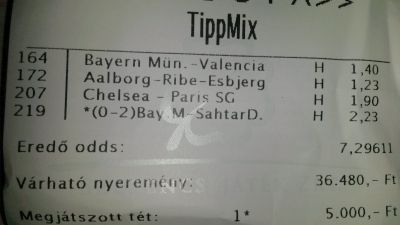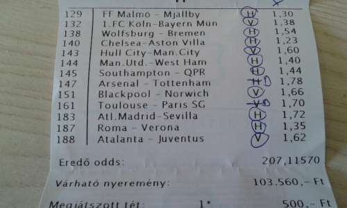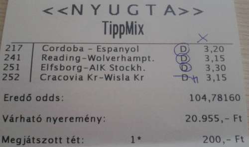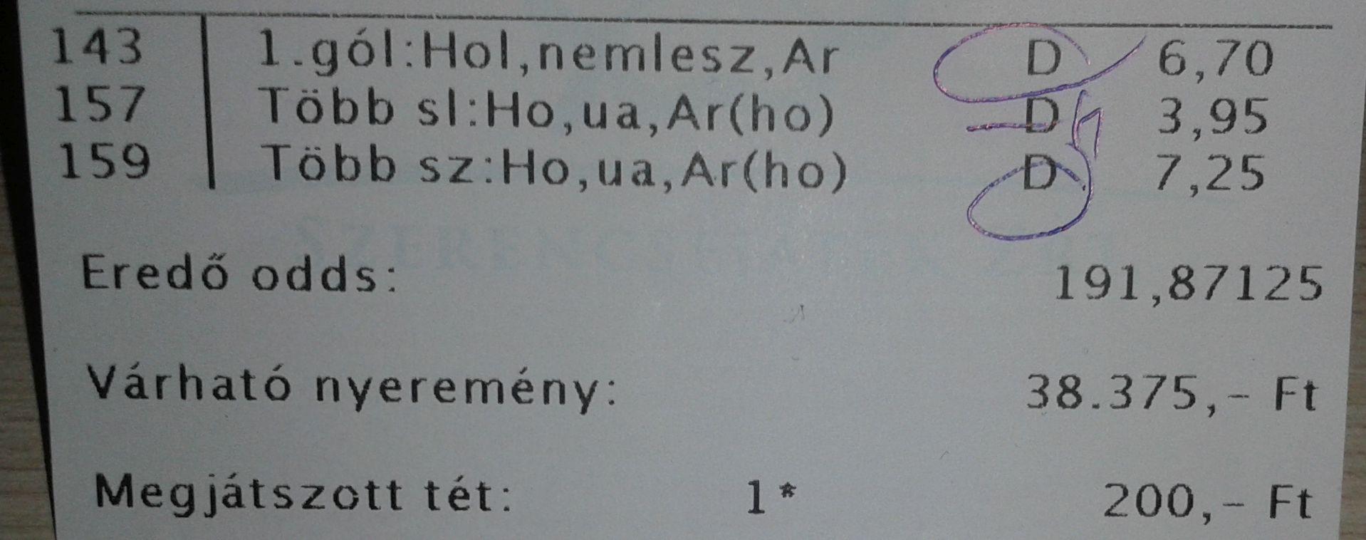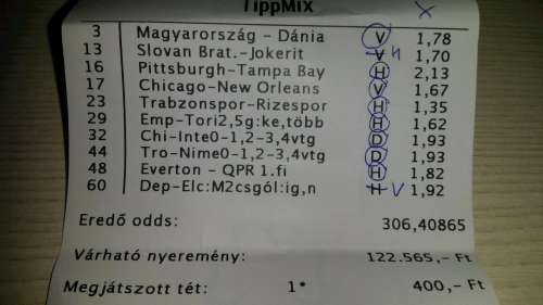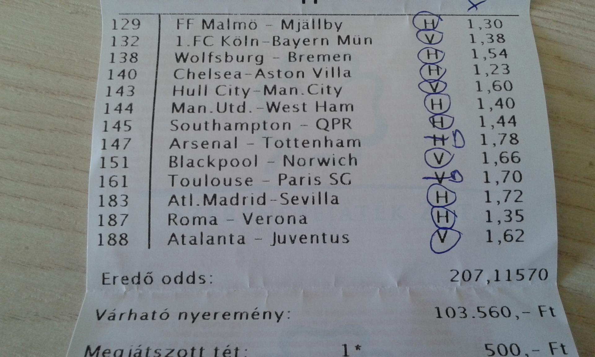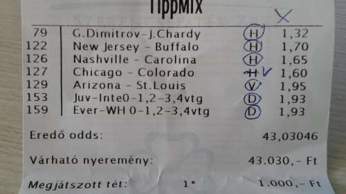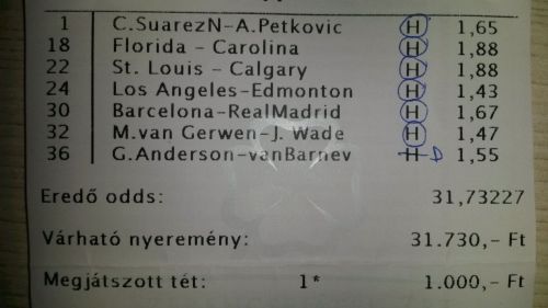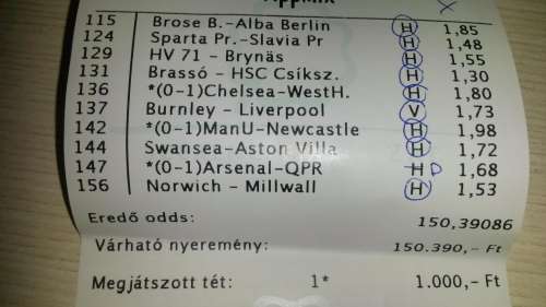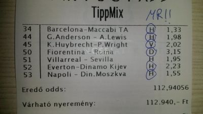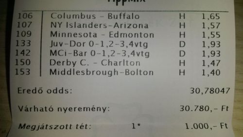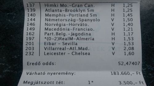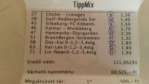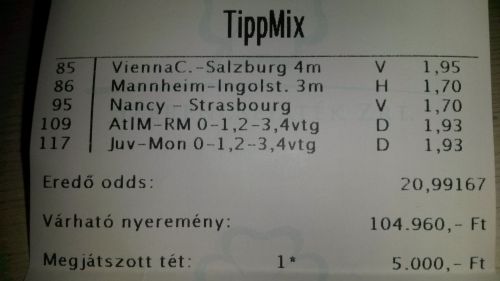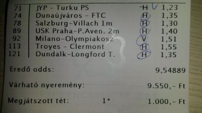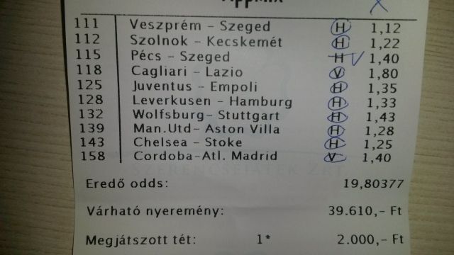 nem nagyon voltam lottózó közelbe, meccs előtt meg aszem 2,4-et adott vendég gólra...