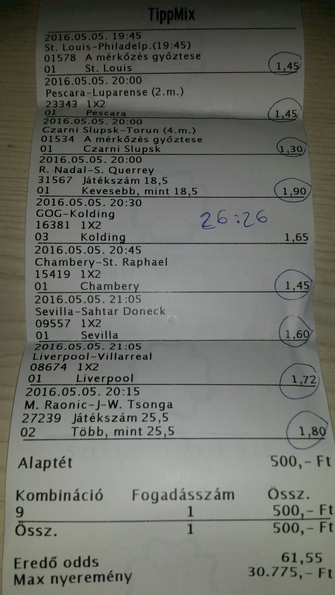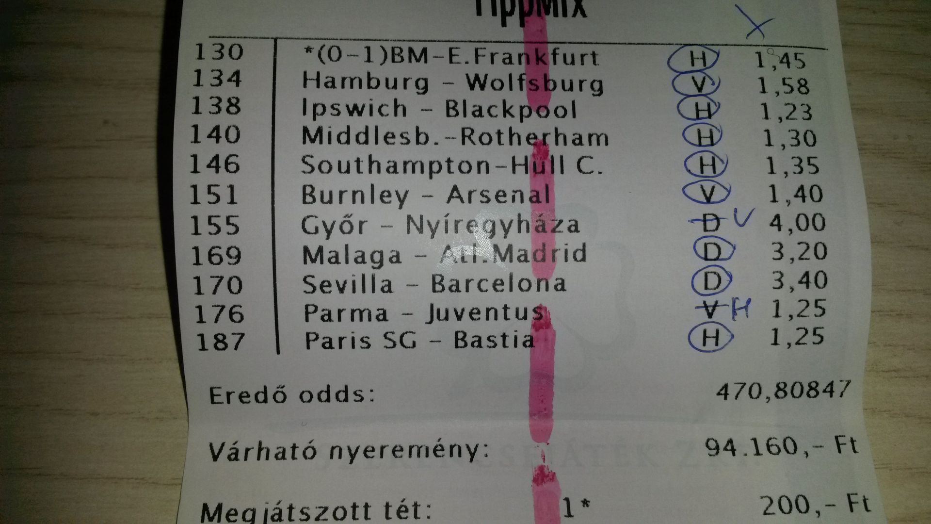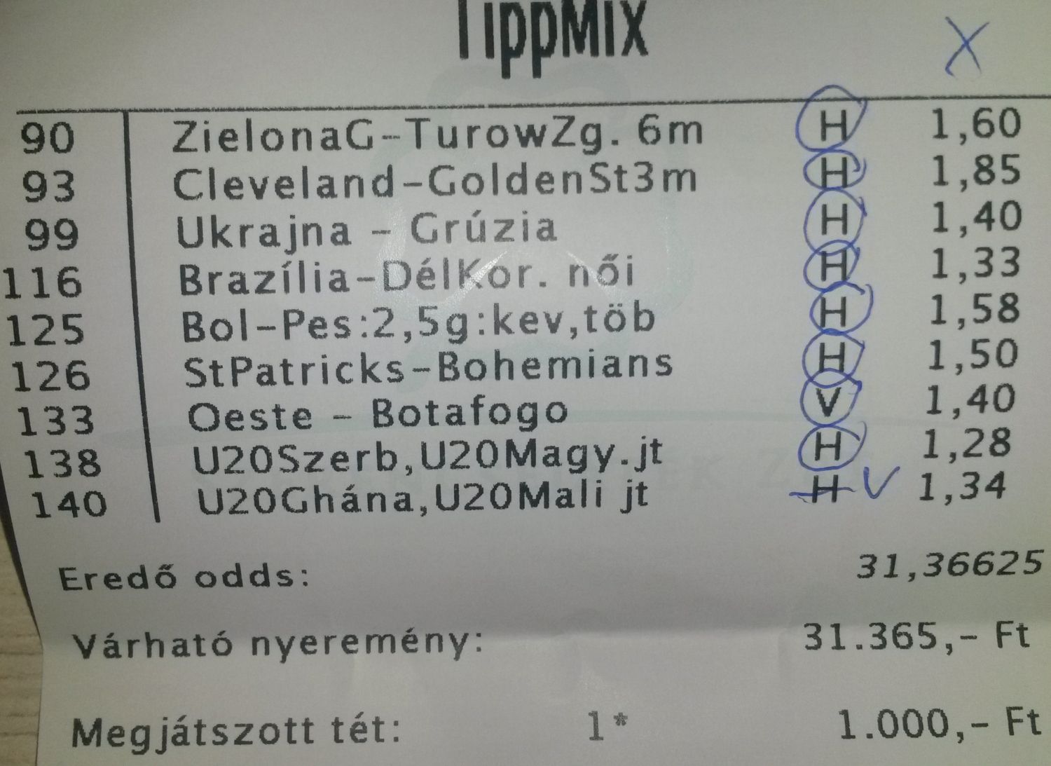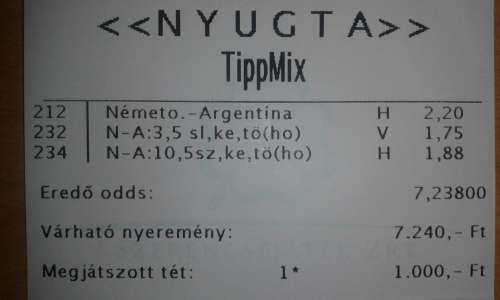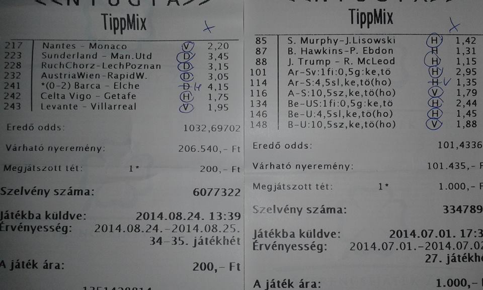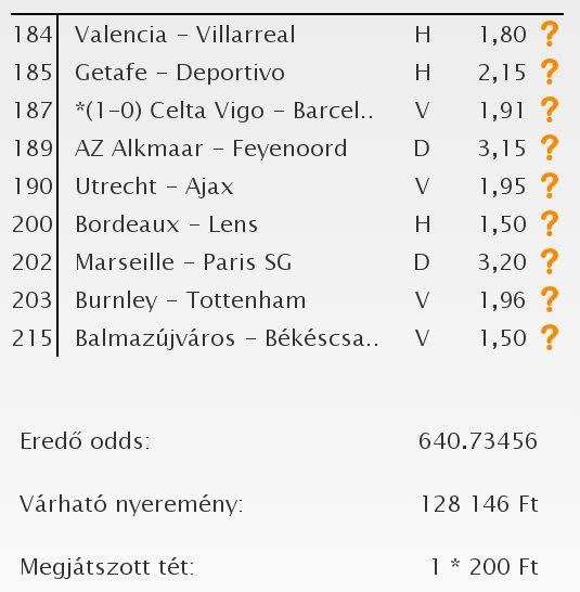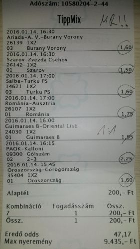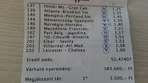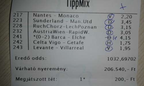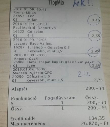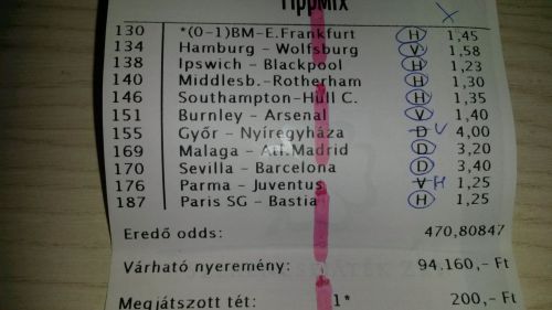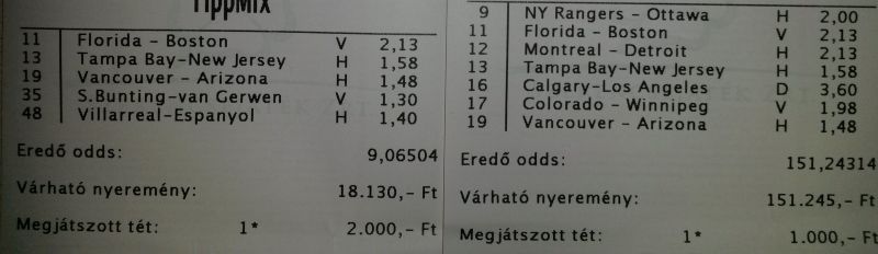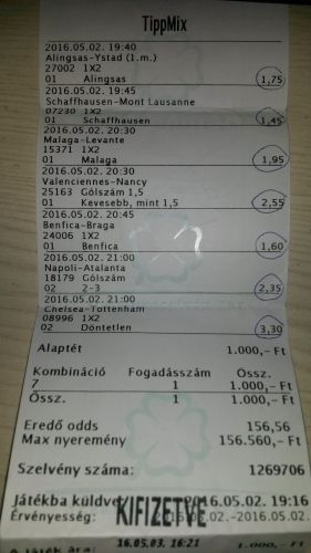 nem nagyon voltam lottózó közelbe, meccs előtt meg aszem 2,4-et adott vendég gólra...