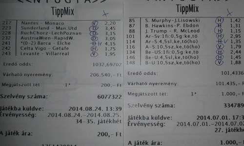 szelót kiállítottam , 20.000-rel fogadtam "volna", de mondtam lottózóba vegye vissza addig a tétet , míg 400 alatt lesz. így sikerült a dolog.