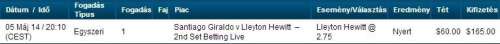 Pospisil 2. szett ment 2,9-es oddson egy ezressel, utána Fradi 5-ös oddson 200-al. Sikerült visszatornászni magam 3700-ra, innen már remélem csak felfelé vezet az út