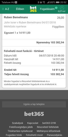Azert tettem csak, hogy 2-es felett legyen az odds, mert 1,88 vagy 1,90 volt a belga meccs kapura tarto loves odds-a, aztan kozben levittek, en meg bent hagytam.