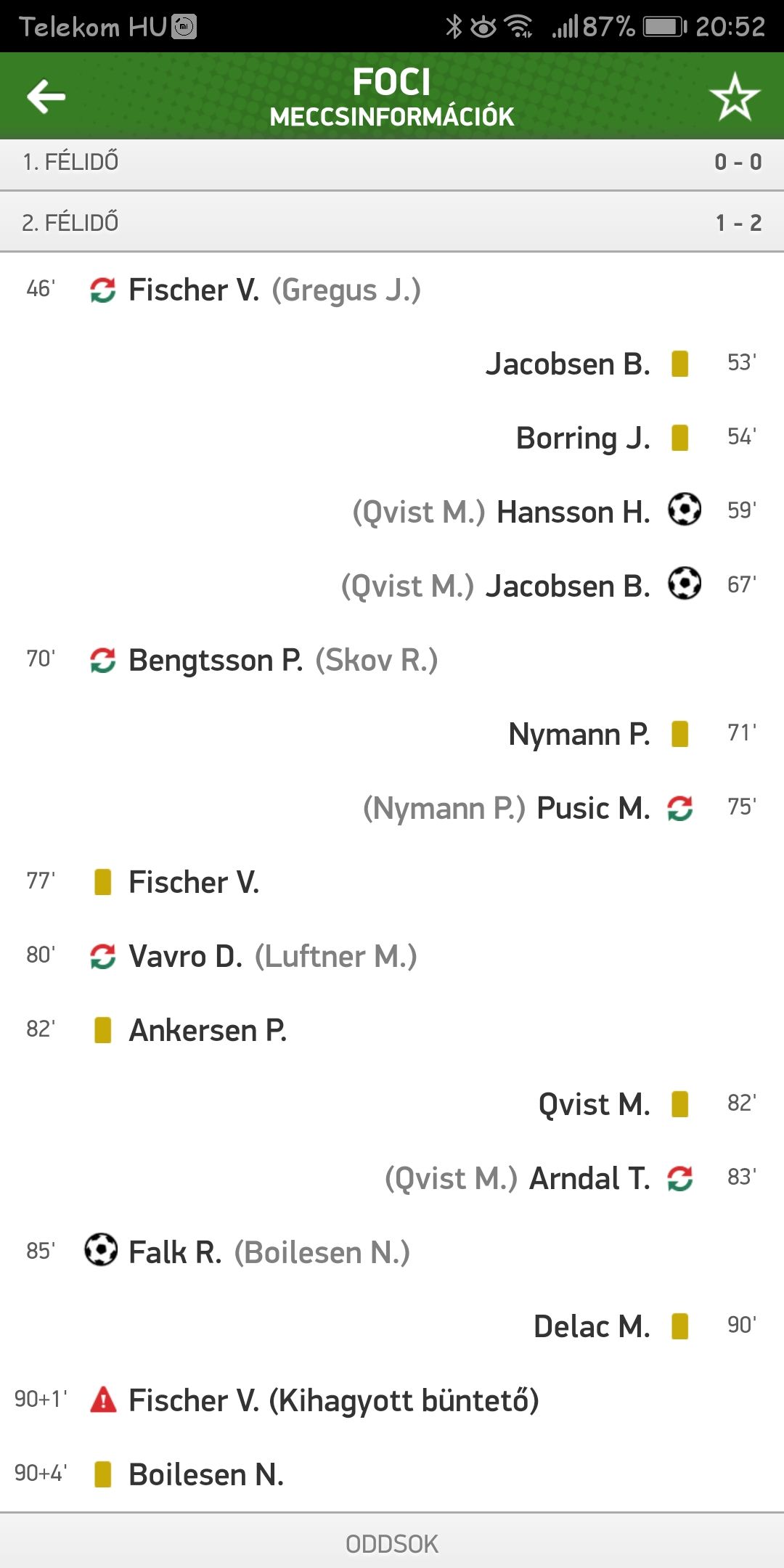 86. percben felvettem 3 ezret, mert meg mindig 1-1 volt. Erre 90+3 bunteto, 2-1. Link.