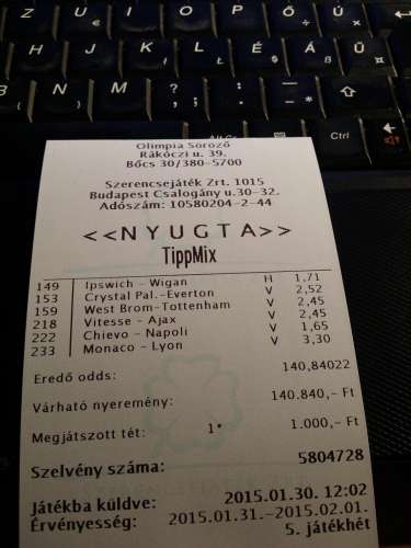 Erről a szelvényről lett volna szó tegnap, nagyon sajnálom így utólag is, hogy nem tudtam megoldani a visszafogadást, mert hát pont úgy nyertem volna, éreztem hogy kell, így ez rosszul érintett, mikor pluszba jöhettem volna ki belőle.